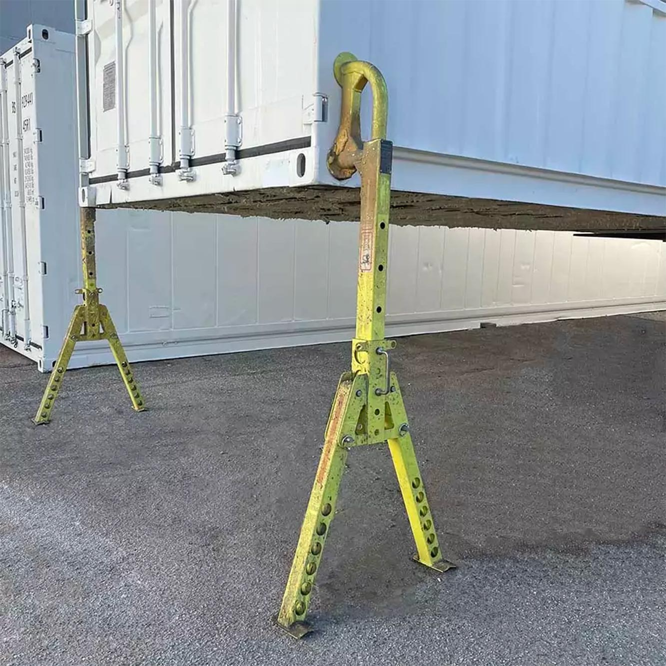La béquille de levage est l’accessoire parfait pour stabiliser un conteneur lors du déchargement sur site. Elle permet de décharger facilement votre conteneur maritime ou de stockage sans besoin de chariot élévateur ni de grue, simplifiant ainsi la manutention et les opérations logistiques.
